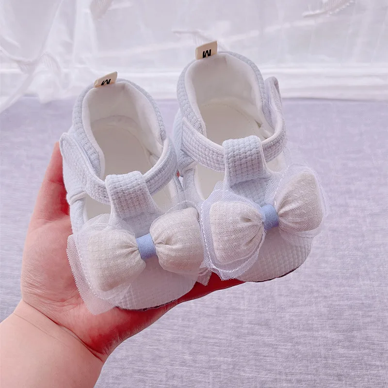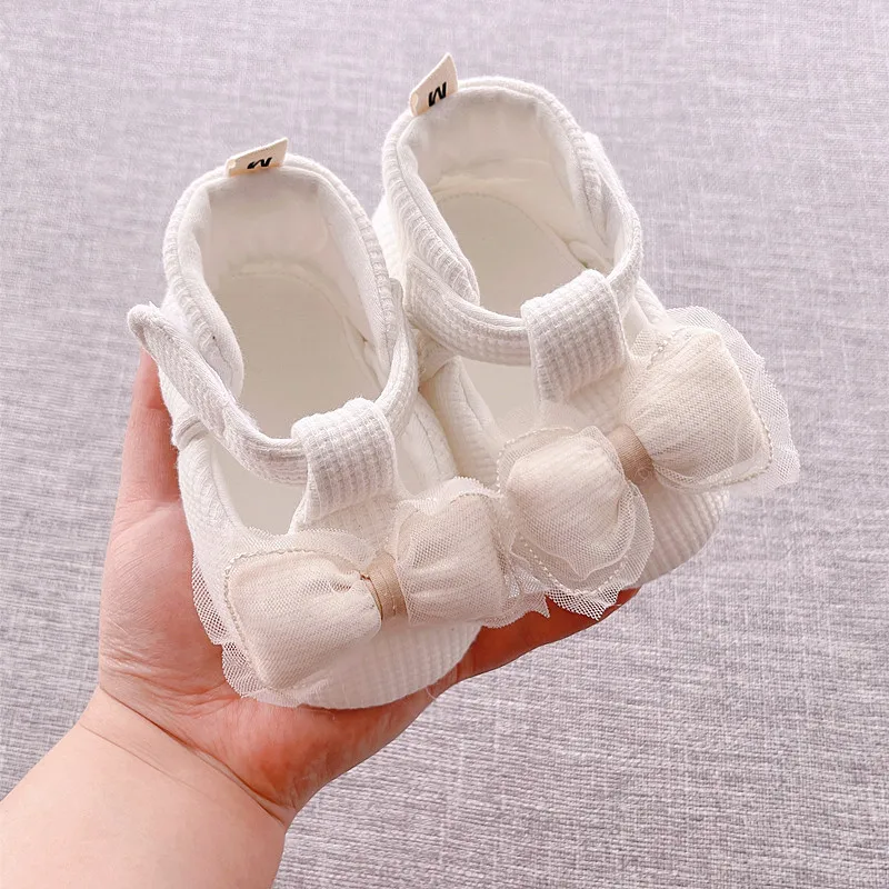 0-1 Year Toddler Soft White Princess Shoes Bow Newborn Girl Shoes Anti Slip Canvas Soft Sole Baby Prewalker Shoes