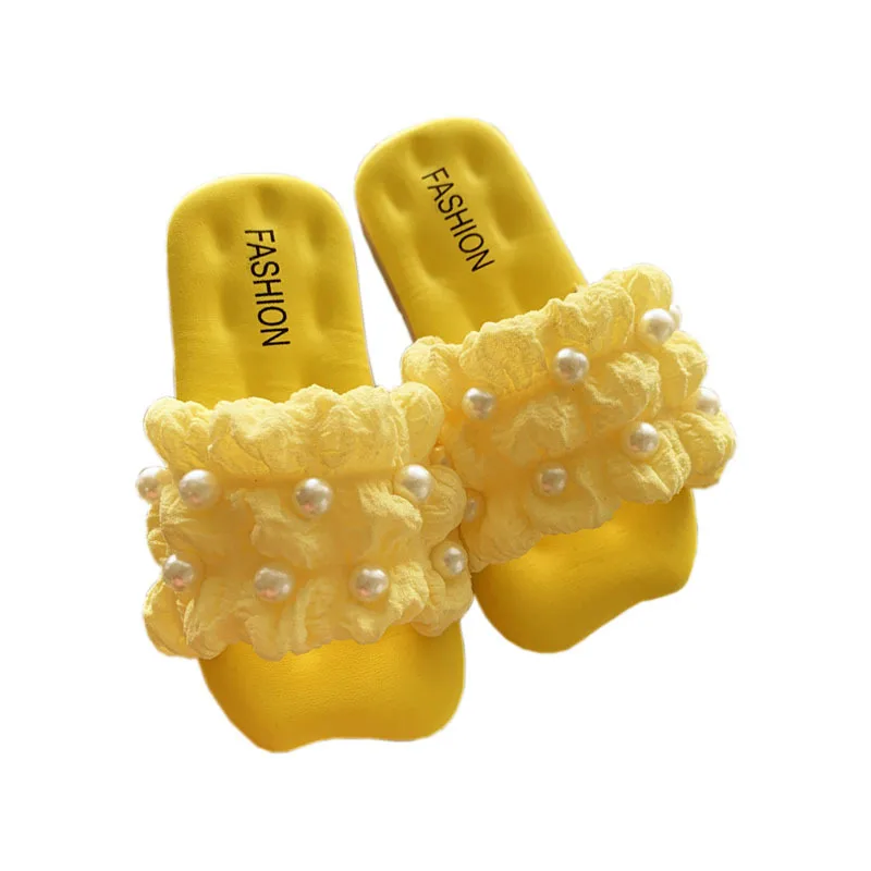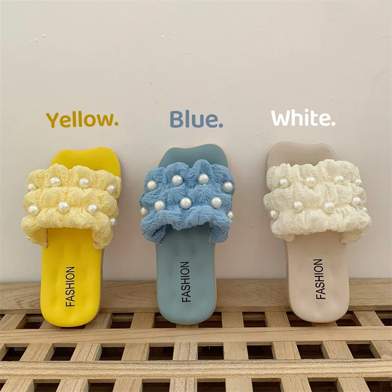 Fashion Summer Soft Bottom Anti Slip Casual Breathable Girl's Pearl Sweet Princess Baby Girl Flat Slippers for Kids