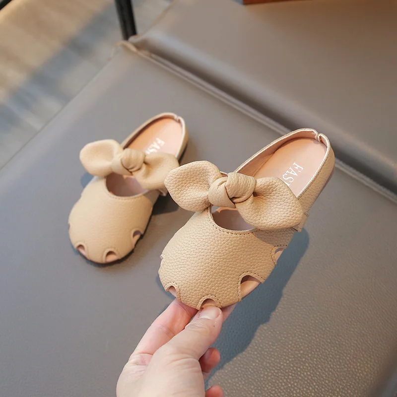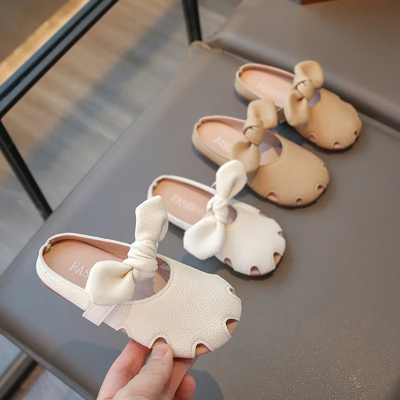 Children's Slippers Summer Hollow Out Bow Toe Soft Bottom Non-Slip Outdoor Slippers for Kids