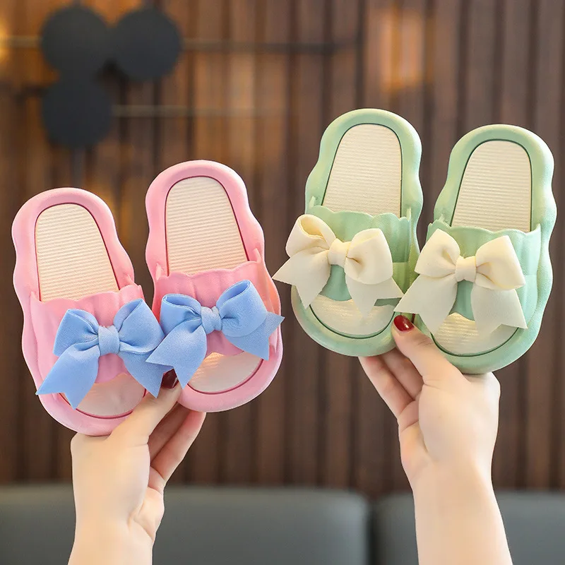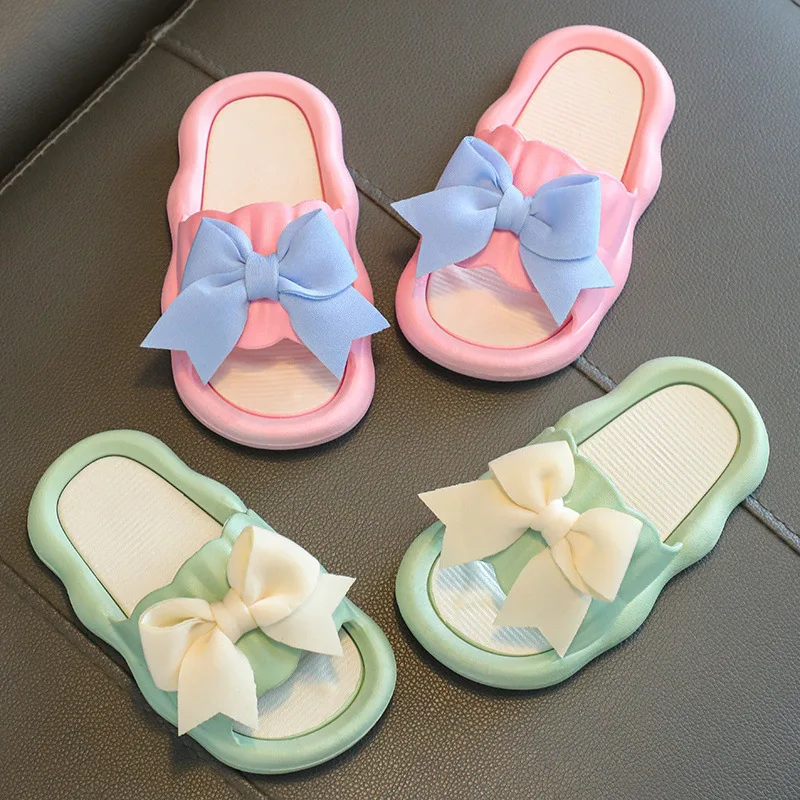 Designer Fashion Children's Summer Outside Cute Bow Non-Slip Soft Bottom Kid Girl Slippers Indoor Home