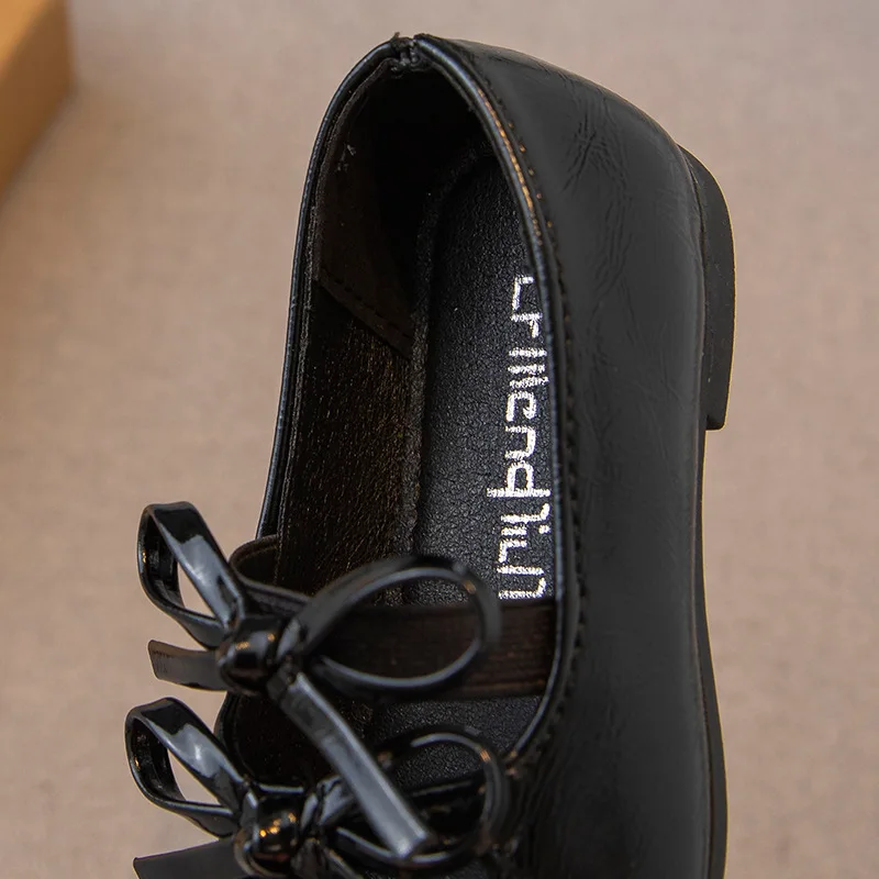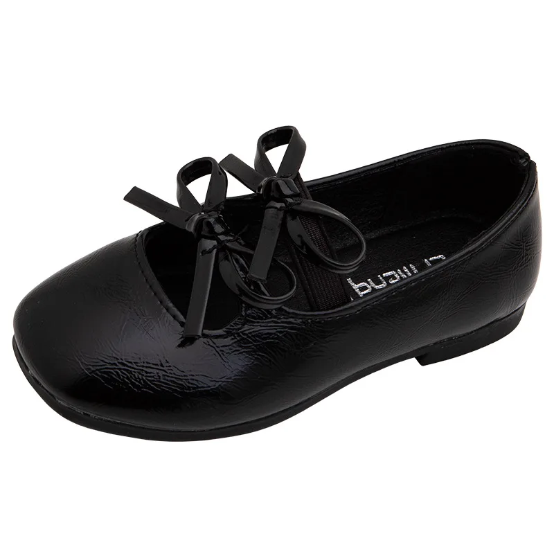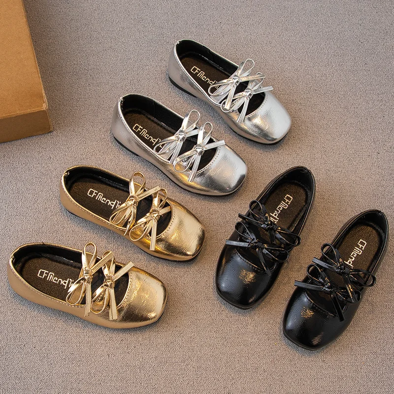 New Design Spring and Autumn Gold Silver PU Leather Shoes Girls Princess Footwear Shoes with Double Bow