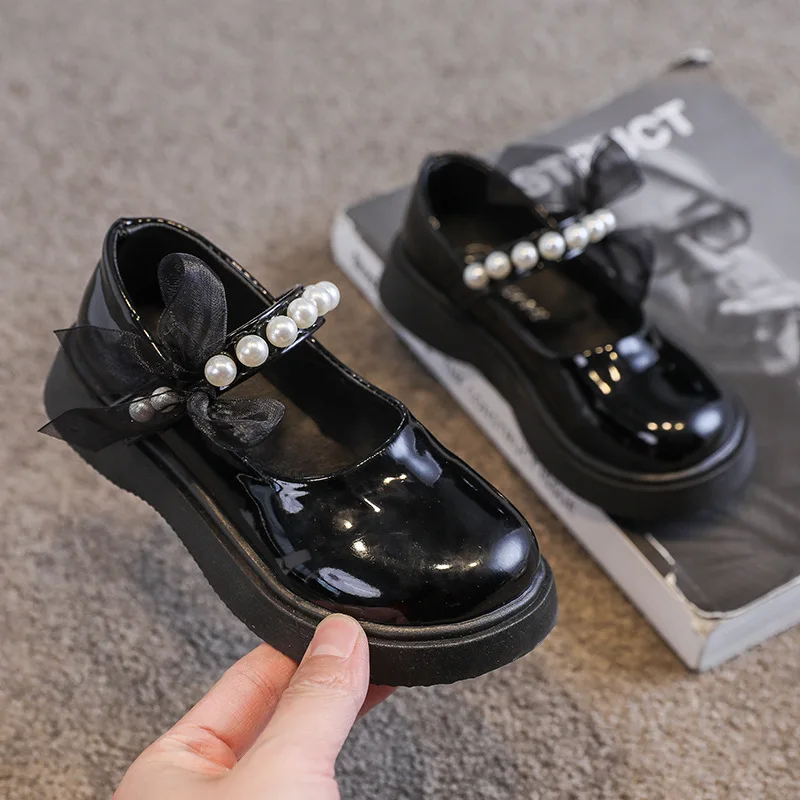 New Arrivals Spring Korean Style Soft Soled Bead Ankle Strap Kids Children's Princess Mary Jane Shoes