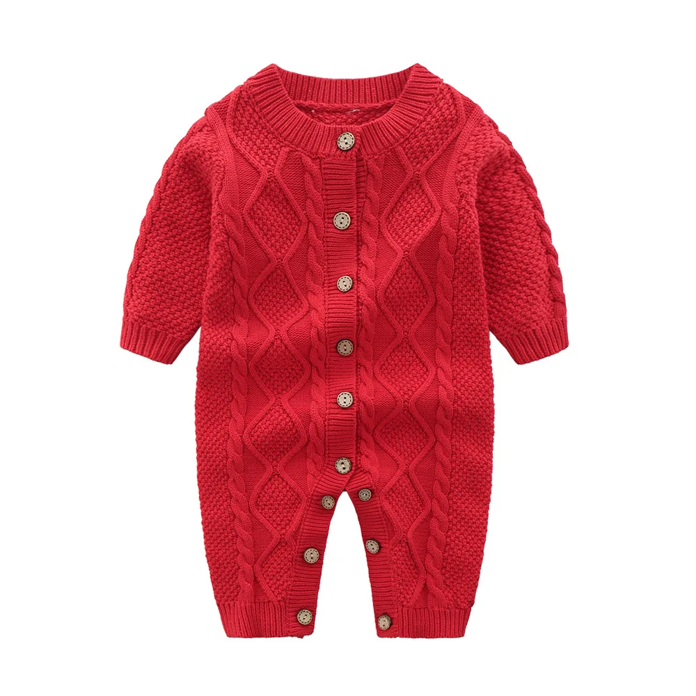Baby Romper Newborn Clothes Cotton Two-piece Winter Knitted Long Sleeve Baby Romper With Hat Set