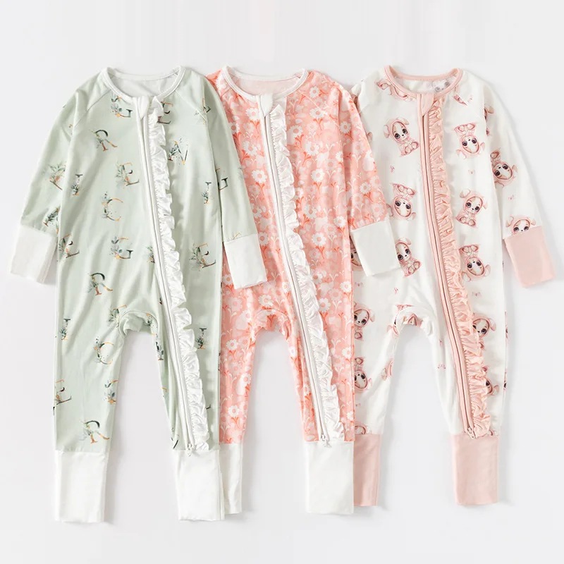 Unisex Custom Printing Bamboo Baby Girls Jumpsuit Romper Newborn Bodysuit Long Sleeve Spring Summer Baby Pajamas