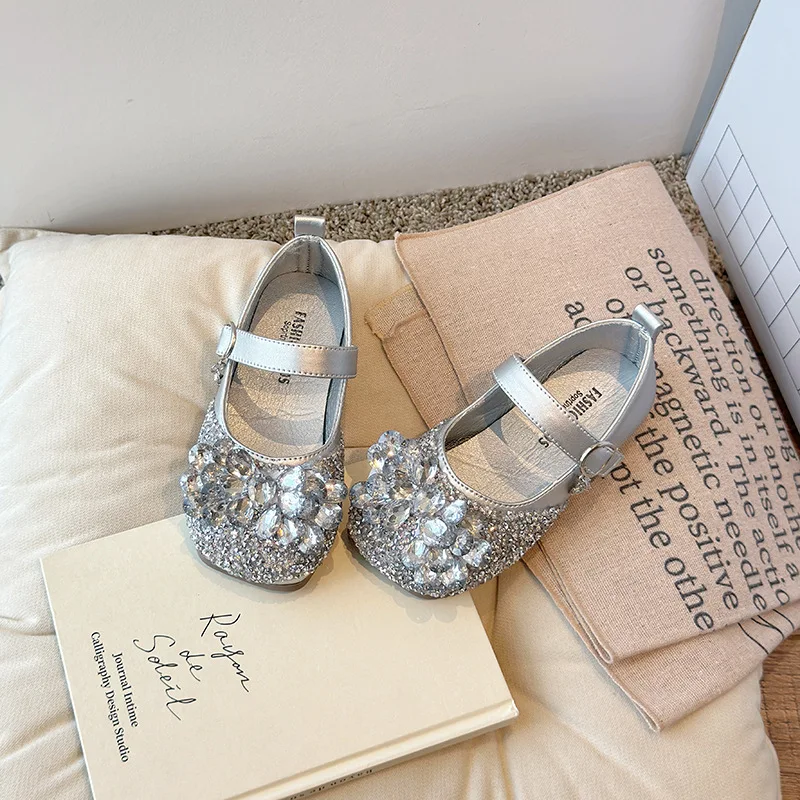 Wholesale Glitter Soft Sole Rhinestone PU Princess Footwear Shoes Baby Kids Dress Shoes for Birthday Party