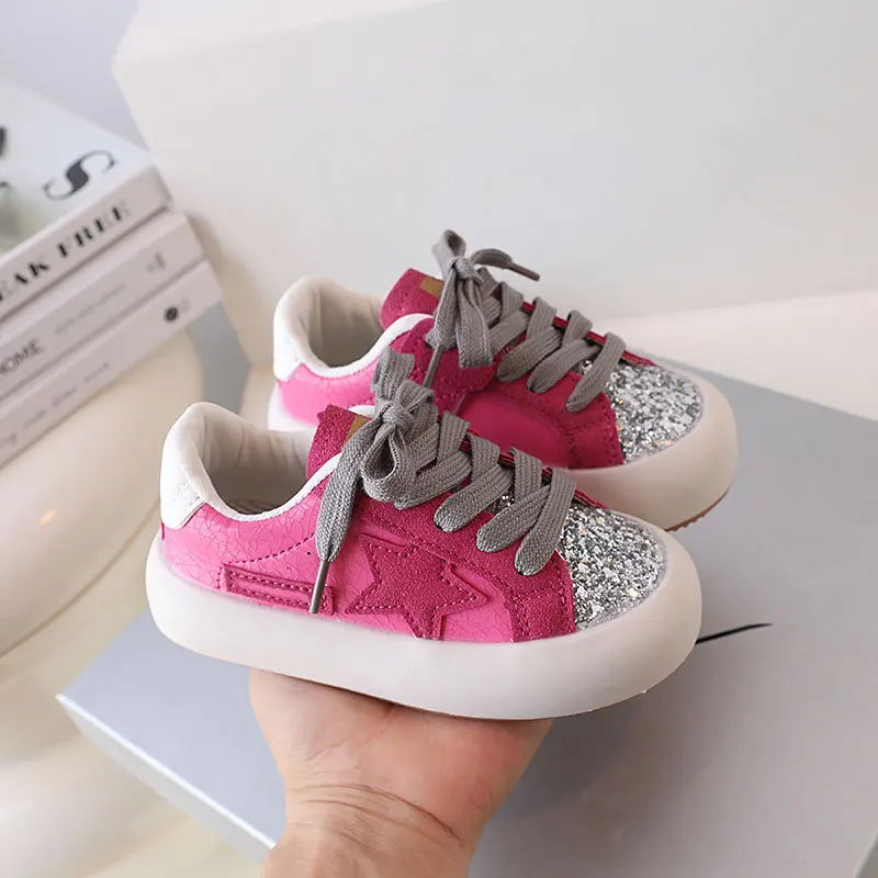 Spring Autumn Children Non slip Walking Skate Casual Shoes Lace-up Sequin Star Kids Sneakers Outdoor School Shoes