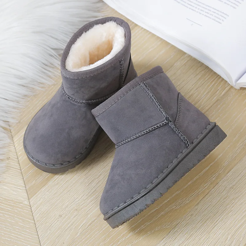 Fashionable Winter New Styles Brown Gray Plush Inside Casual Snow Boots Shoes for Boys and Girls
