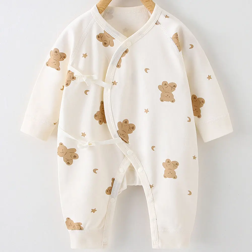 Newborn Solid Color Embroidered Infant Long Sleeves Romper Bear Baby Printing Bodysuit Clothing Cotton Jumpsuit