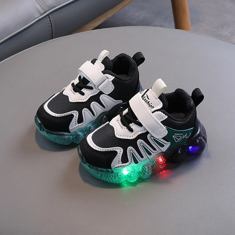 Hot Selling Outdoor Sport Breathable Anti-slip Soft Soles Children's Sneakers Shoes with Luminous Sole