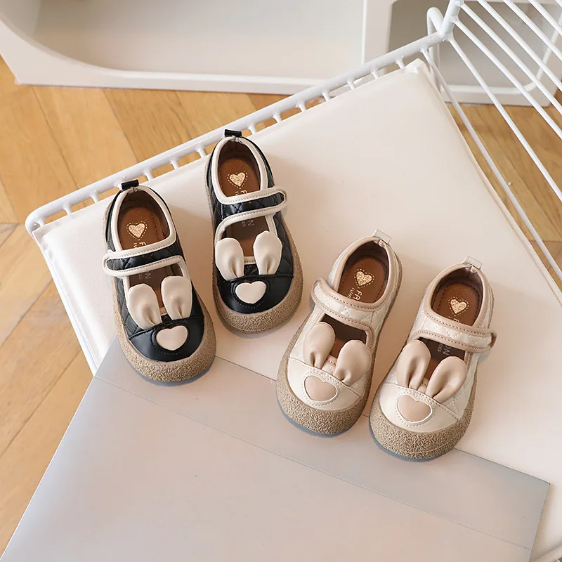 Children's Casual Shoes Comfortable Flat Anti-slip Kids Walking Shoes Cute Upper Rabbit Decorate Girls Princess Shoes