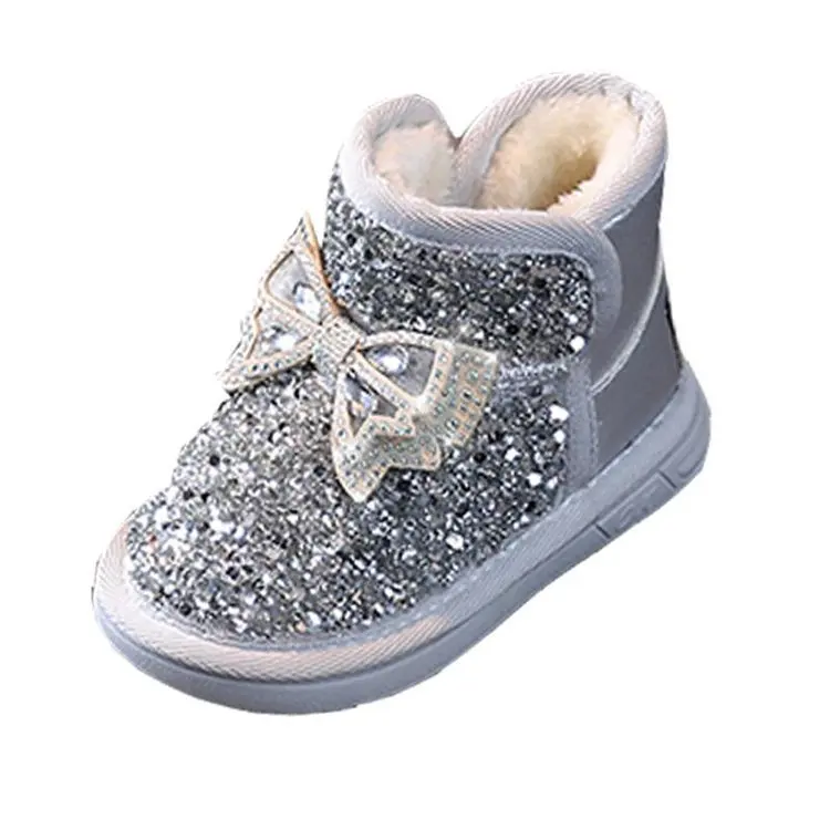 Wholesale Children's Sparkly Bow Toddler Shoes Pink Winter Warm Snow Glitter Kids Girls Snow Boots