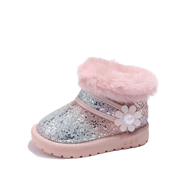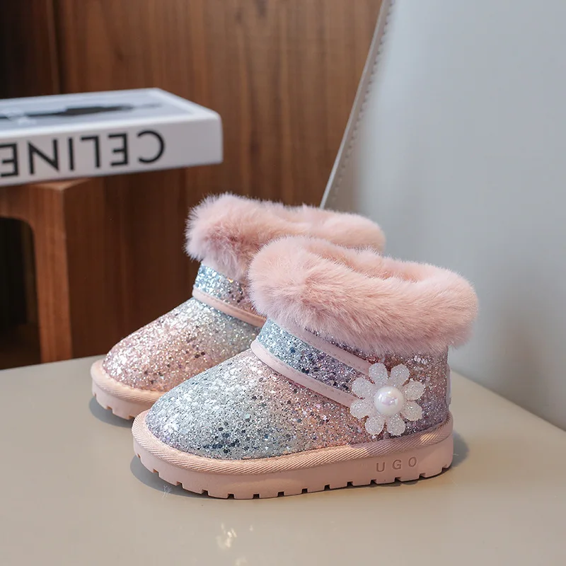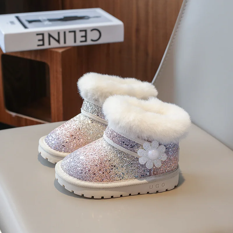 Children's Winter Fashion Princess Non-slip Slip-on Soft Warm Shoes Girl Glitter Snow Boots