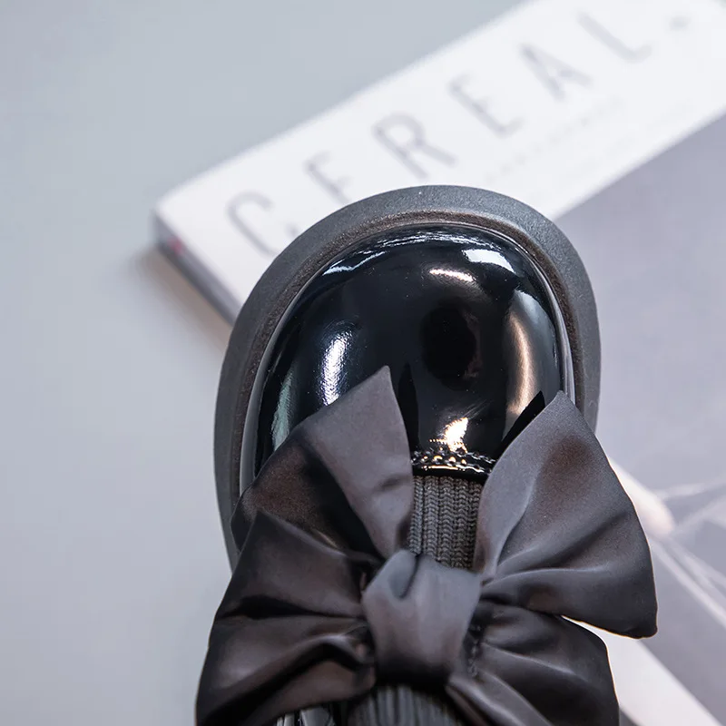 Wholesale Fashion PU Solid Bow Girls Uniform Spring Autumn Soft Bottom Kids Black Knit School Socks Outdoor Shoes