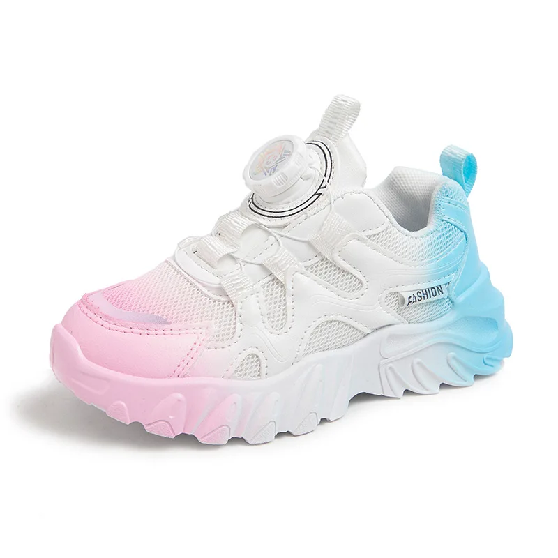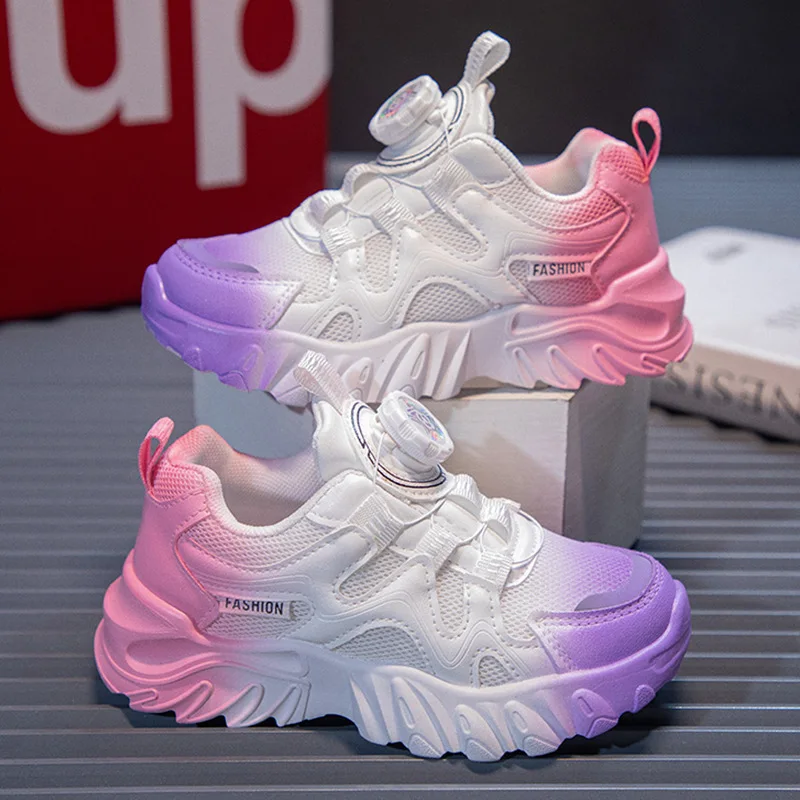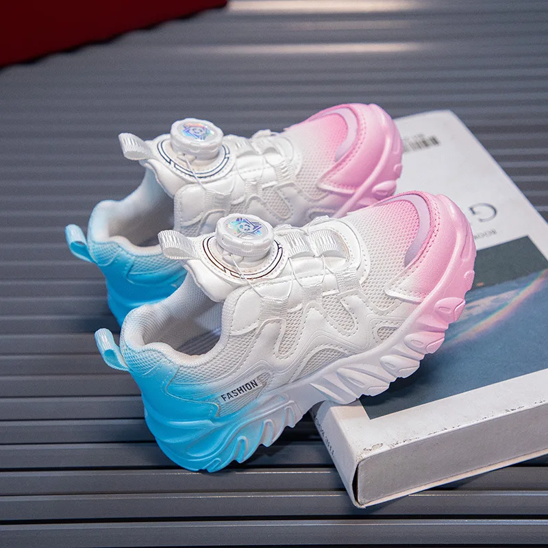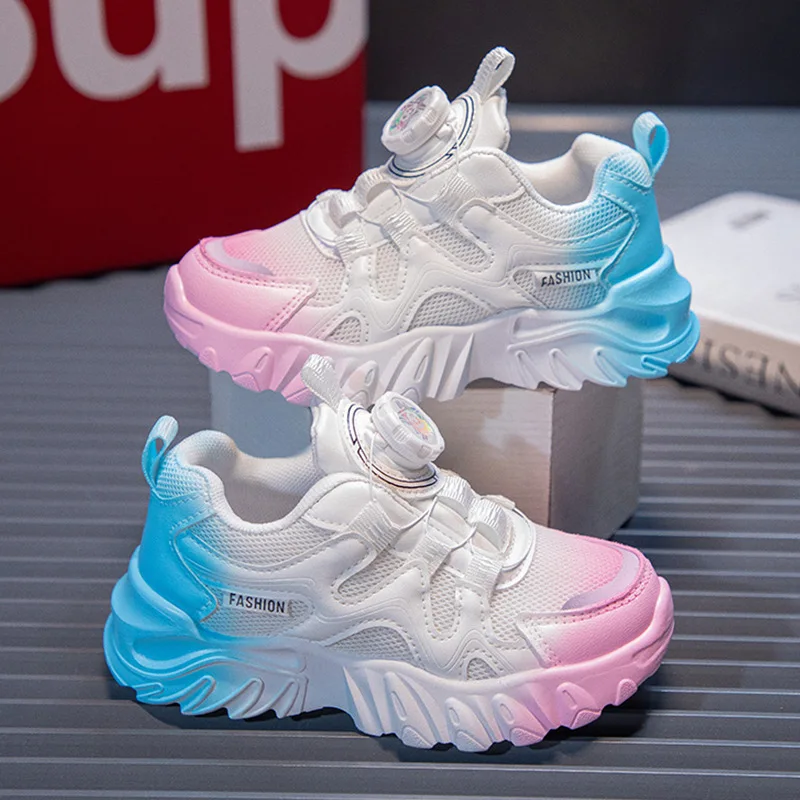 Children's Anti Slip Running Shoes Breathable Sports Spring Single Shoes Mix Rotating Button Kids Running Shoes