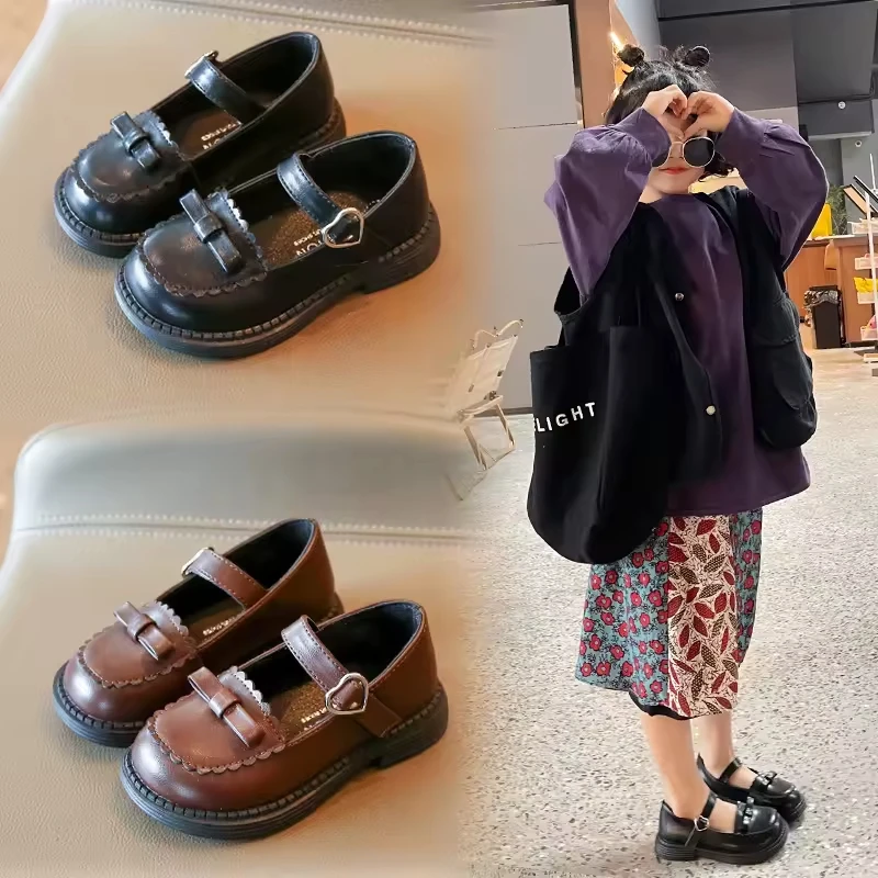Bowknot Wedding Princess School Shoes Pu Leather Kids Children School Student Shoes Pu Outsole Dress Shoes
