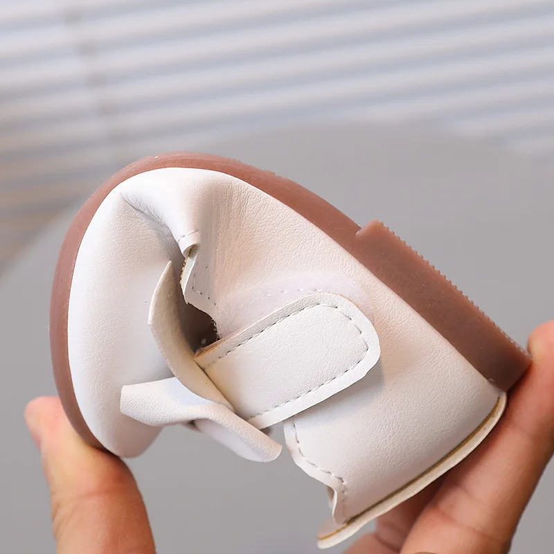 Wholesale PU Leather Rubber Sole Flat White Leather Bow Girls' Soft Comfortable Princess Single Dress Shoes