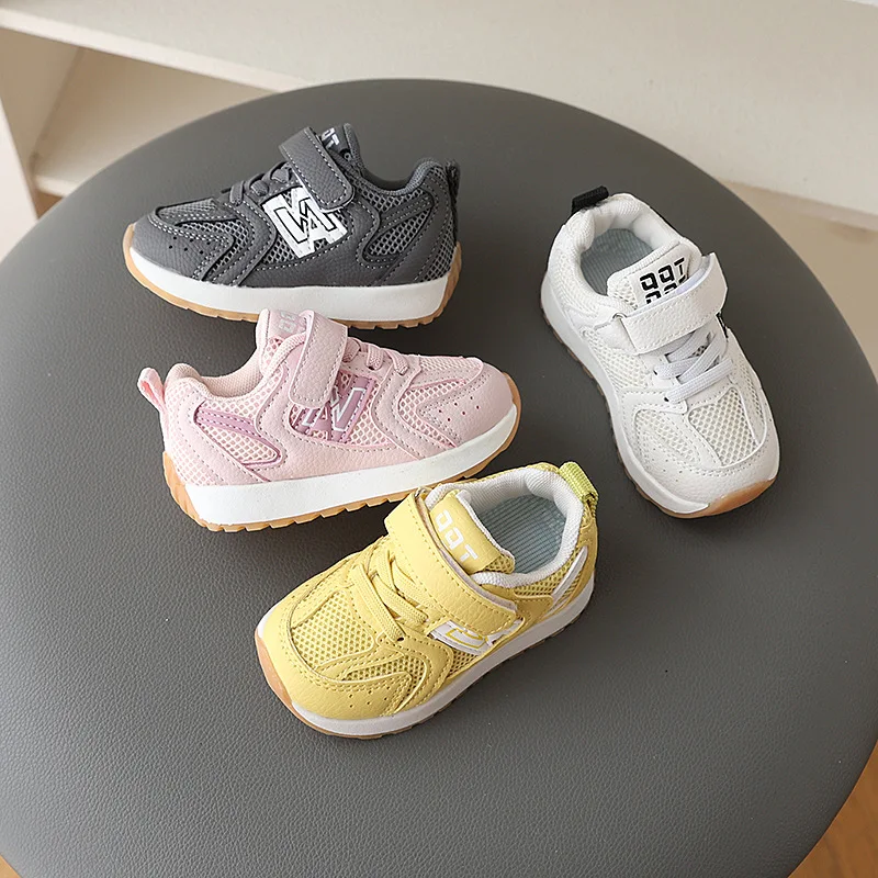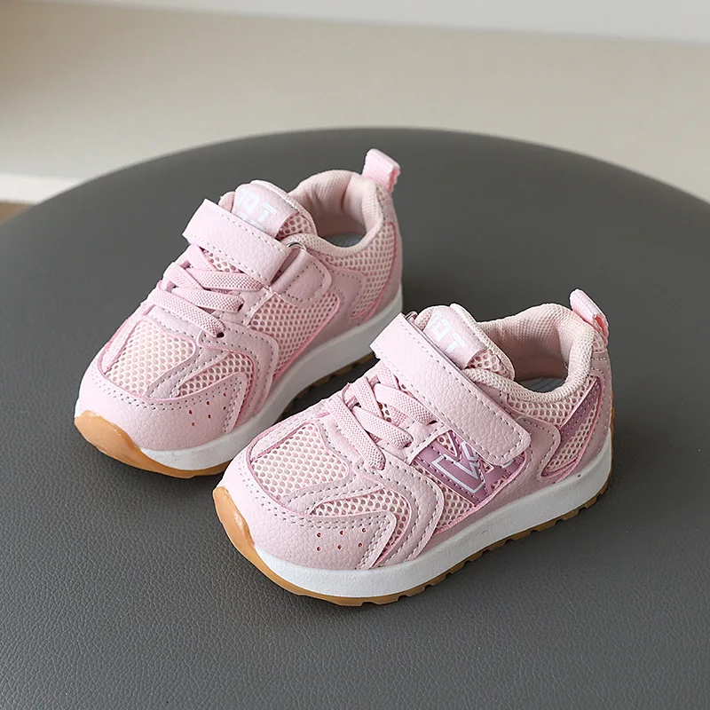 New Design Children 's Breathable Kids Sneakers Soft Bottom Girls Boy Leather Mesh Sports Footwear Shoes