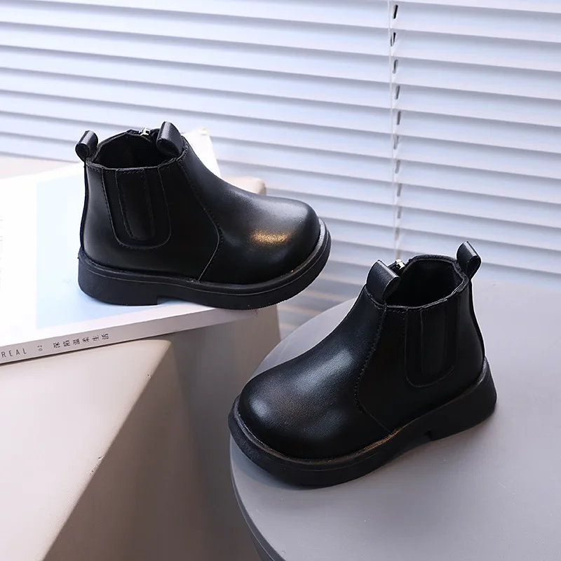 Girls' British Style Mid-Calf for Boots 2026 Autumn Fashionable Chimney Short Artificial Leather Side Zipper Rubber Outsole