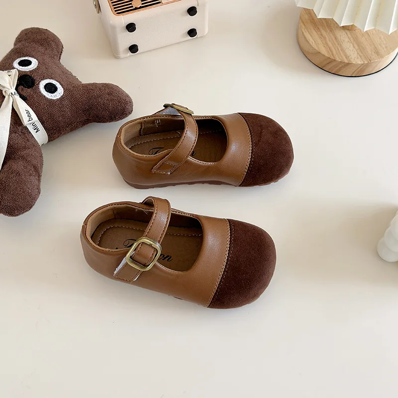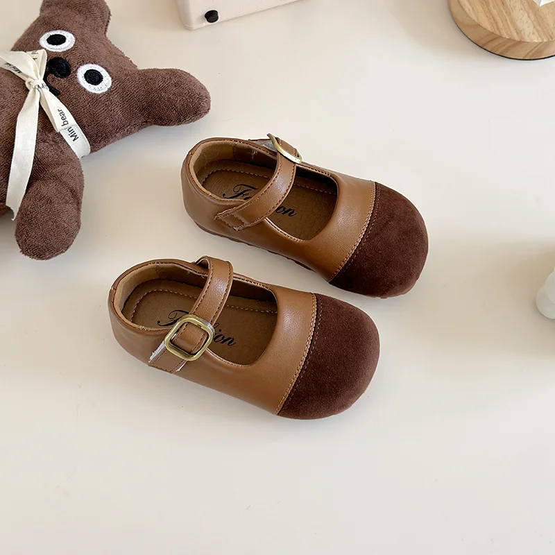 Korean Style Design Children's Patchwork Small Leather Shoes Autumn Girls' PU Casual Soft-Soled Flat Single Shoes