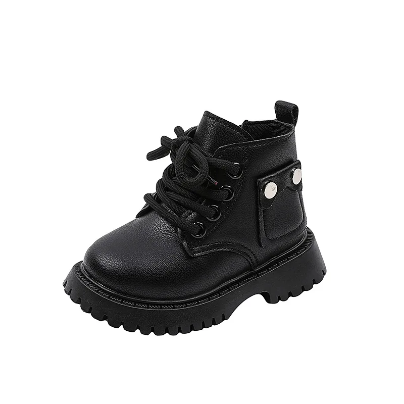 Children's Autumn Winter Trend Leather Lace-Up Ankle Warm Winter Boots Shoes New Girls Boys' Leather Boots