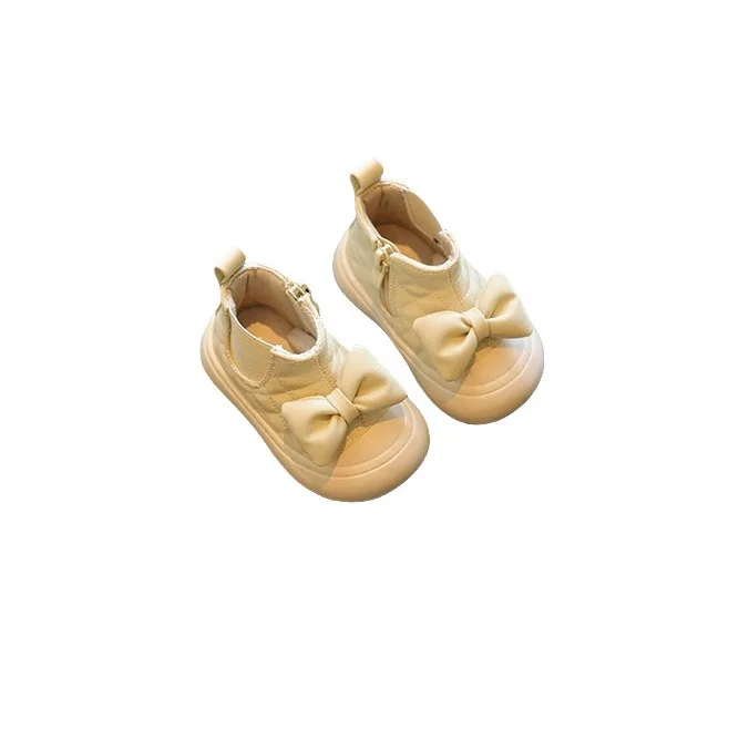 Fashion Children Short Ankle Bow Boots Toddlers Girls Microfiber Leather Soft-soled Shoes Sping Baby Flats Shoes