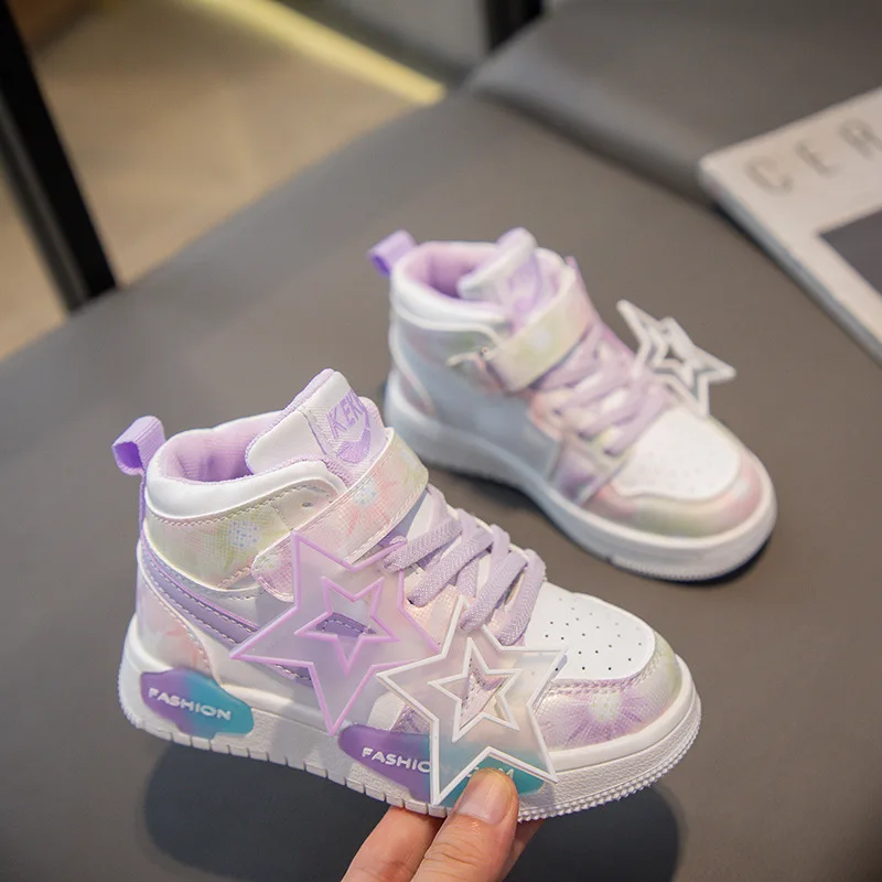 2026 Spring and Autumn Non-slip Boys Sneakers High-Top Star Girls Casual Sports Shoes Children's Flat Casual Board Shoes