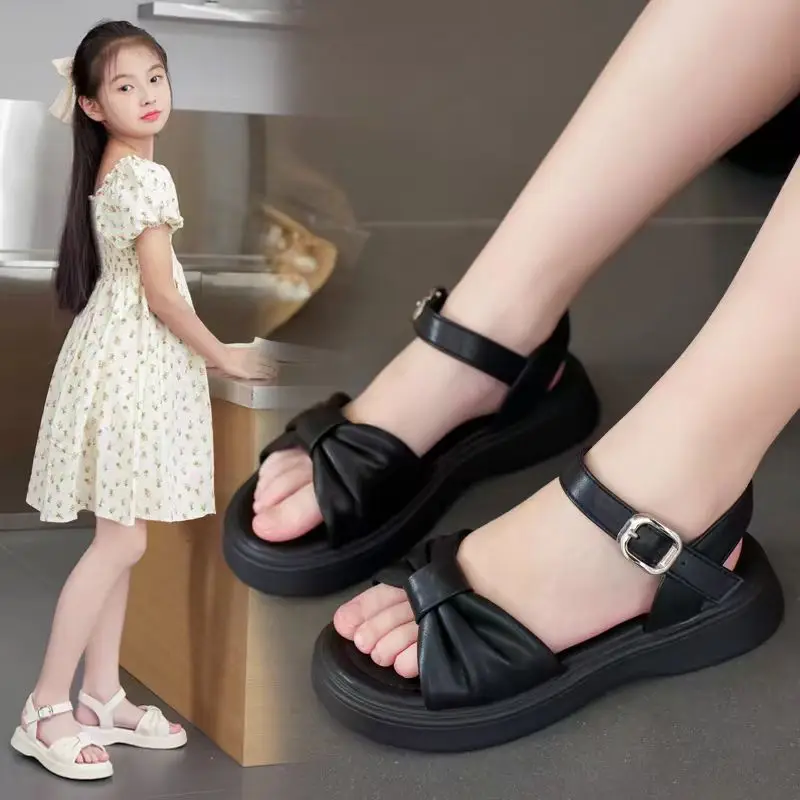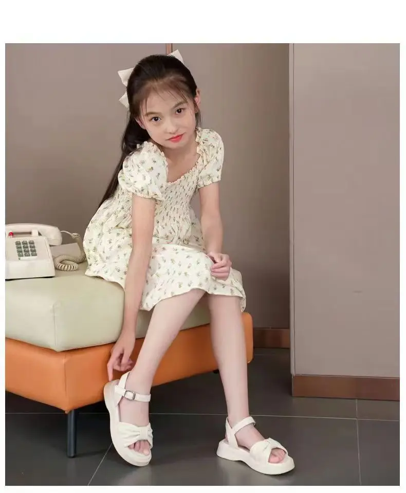 Summer Children Sandals Non-slip pink Kids Girls Bow Princess Kids Sandals Flats Beach Sandals
