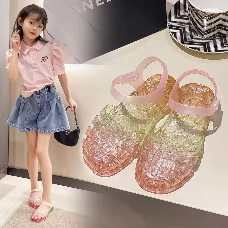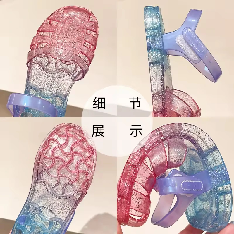 Children's Sandals Gradient rainbow Color Hollowing Beach Sandals Summer Girls Jelly Shoes Soft Unisex-Child Jellies Sandals