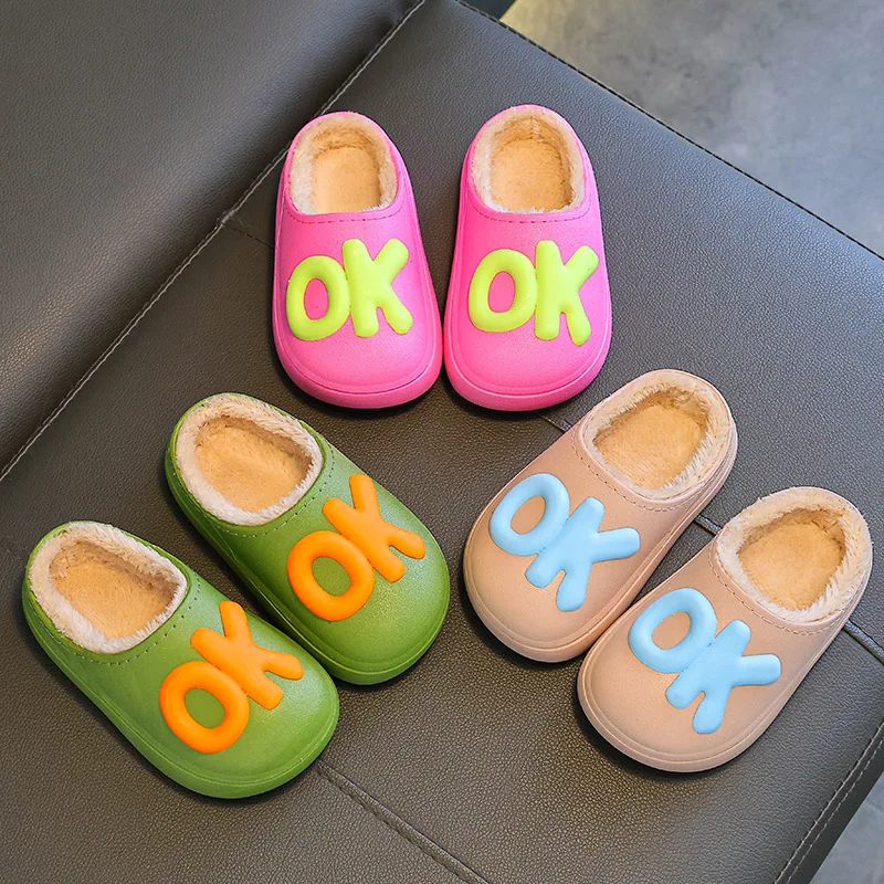 Waterproof Winter Pvc Cute Cartoon Non-Slip Indoor Slippers for Kids Babies Plush Warm Design for Children's Boys Girls