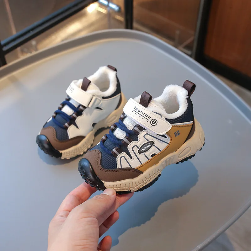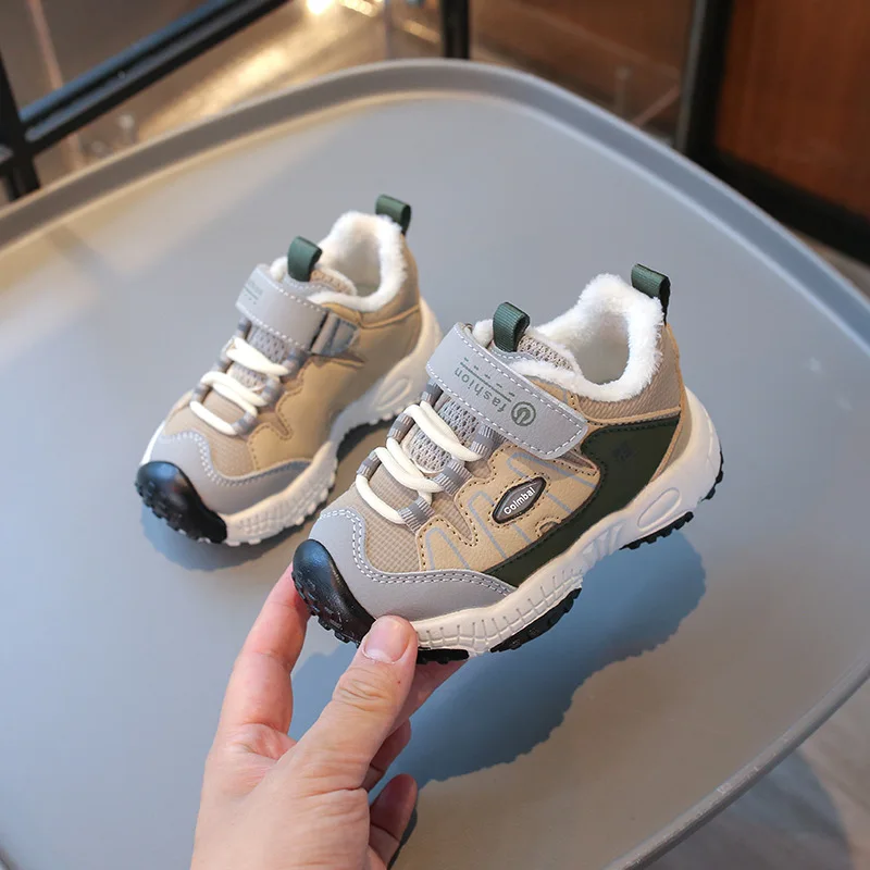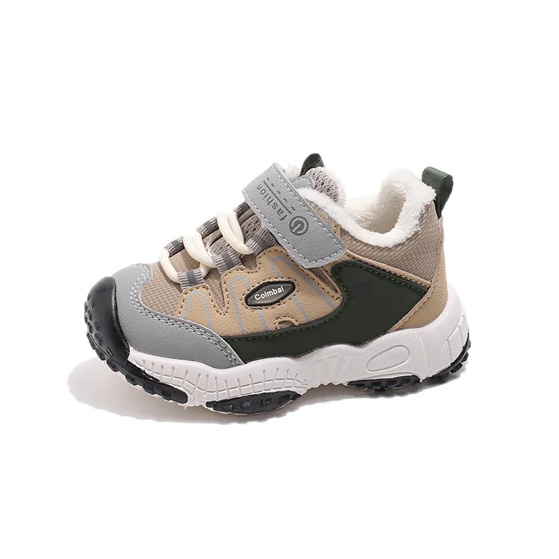 Autumn Winter Wholesale New Design Cotton Fabric Plush Soft Sole Walking Running Shoes for Boys and Girls