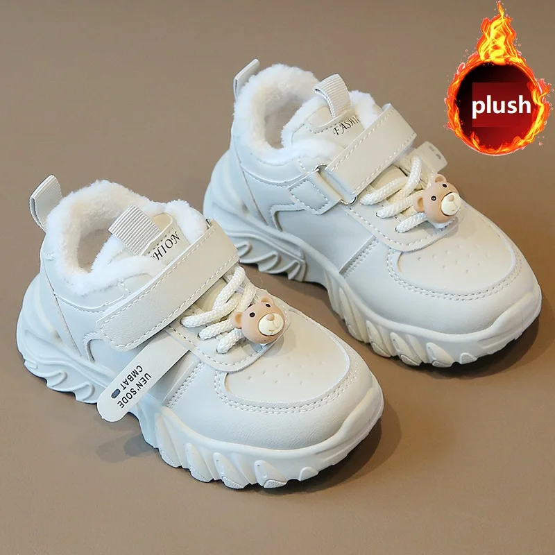 Children's Warm Plush Non slip Casual Sports Shoes for Boys and Girls Soft Soled Leather Board Shoes Sneaker