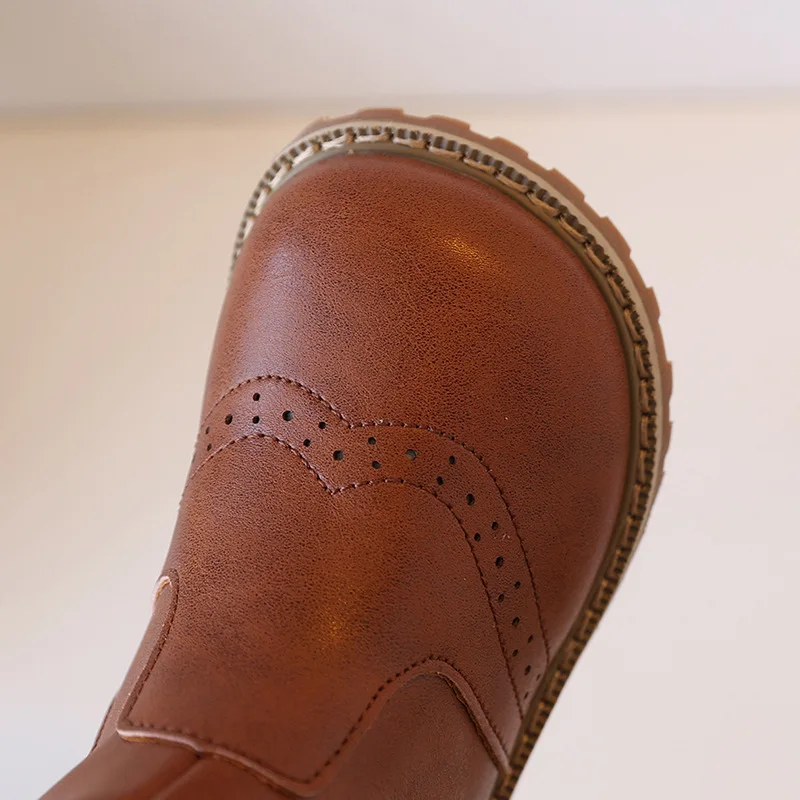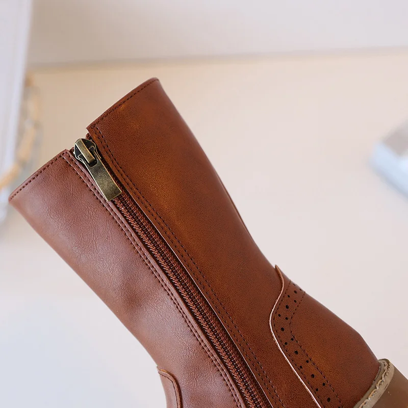 Girls' British Style Mid-Calf for Boots 2026 Autumn Fashionable Chimney Short Artificial Leather Side Zipper Rubber Outsole