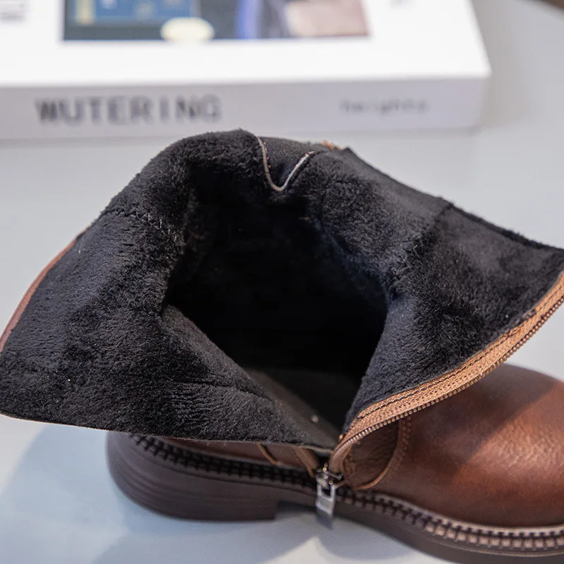 Girls' British Style Mid-Calf for Boots 2026 Autumn Fashionable Chimney Short Artificial Leather Side Zipper Rubber Outsole