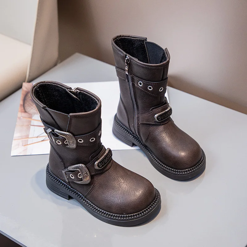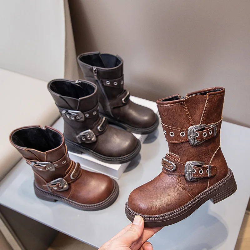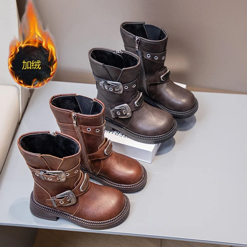 Children's Side Zipper Martingale Boots Girls Mid-Calf Western Cowboy Riding Boots Outdoor Shoes Kids Boots