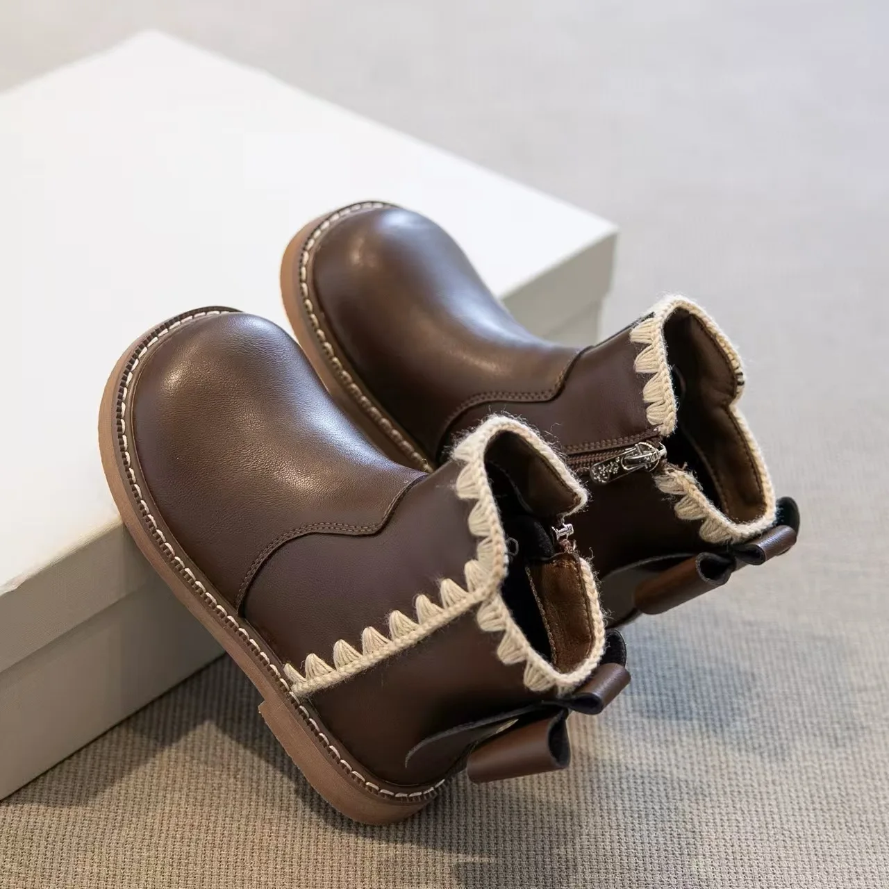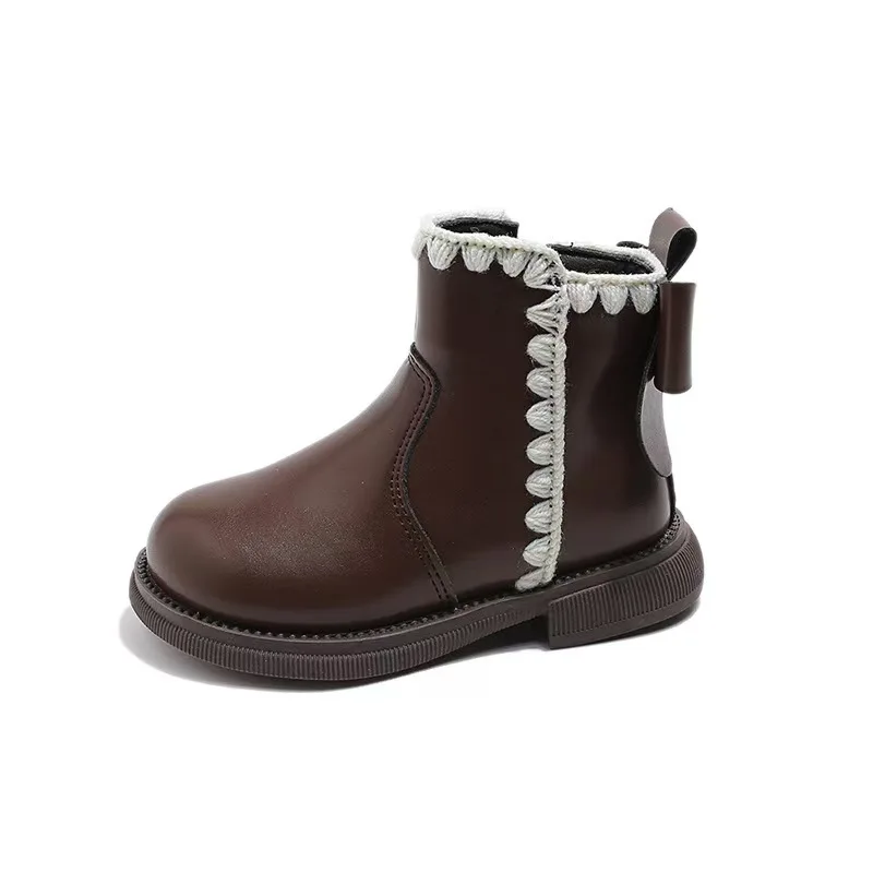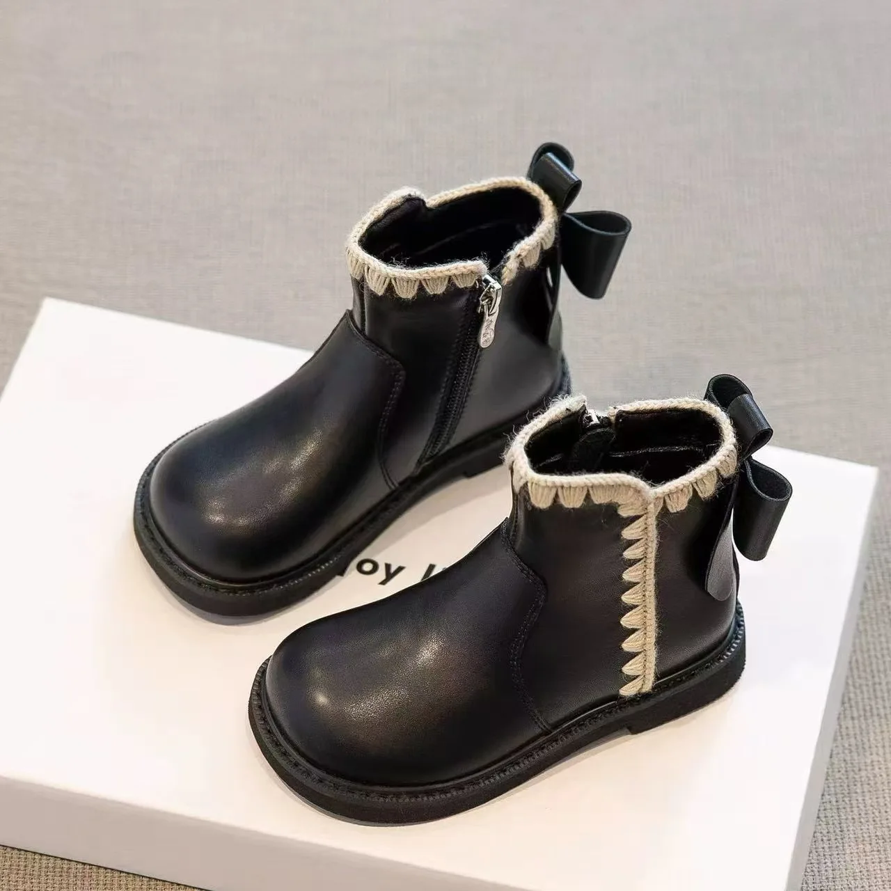 Children's Girls Princess Short Snow Boots Autumn and Winter Soft Bottom Warm Plush Kid British Short Boots