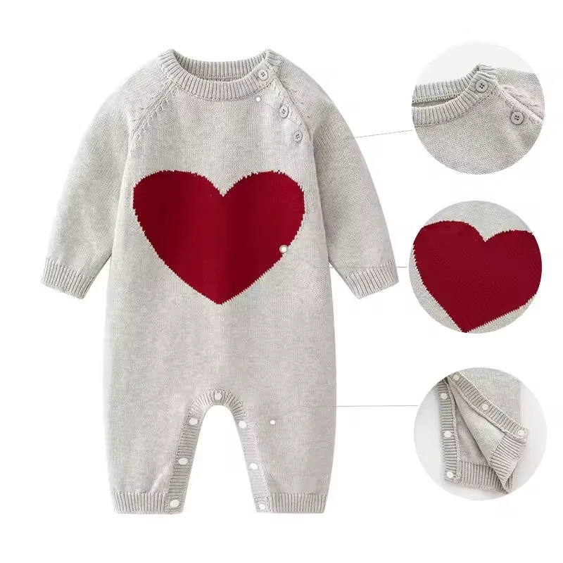 Newborn Long Sleeved Pure Cotton Knitted Love Heart Shape Sweater Infant Clothes Wear Baby Jumpsuit Clothes