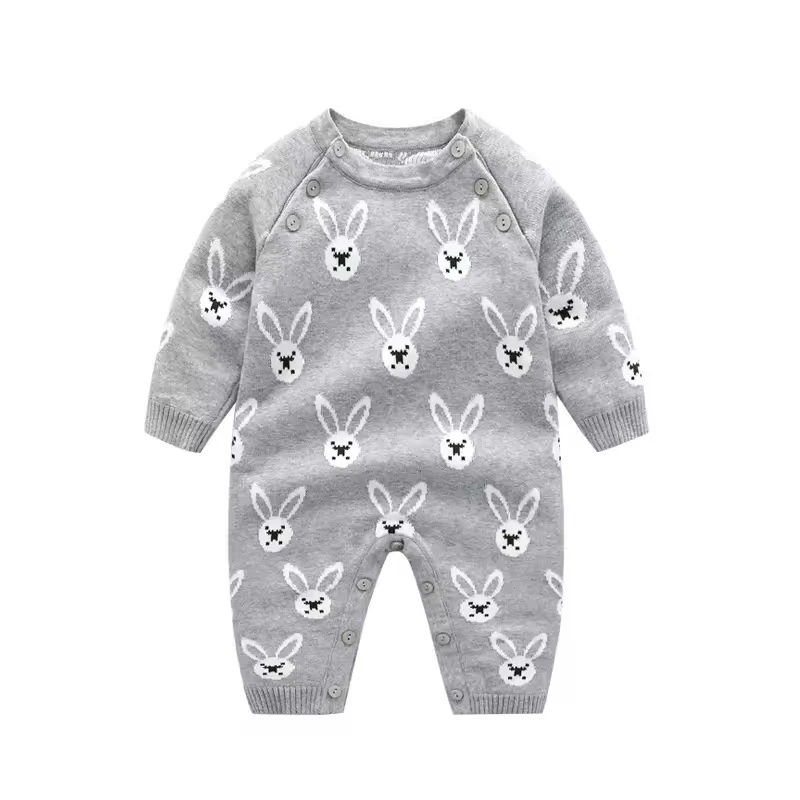 Wholesale 100% Cotton Long-Sleeved Baby Winter Fall Kid Clothing Boy Girl Knitted Romper Baby Knitted Jumpsuit