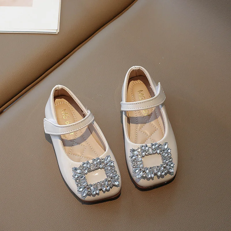Korean Style Children Outwear Crystal Princess Dress Square Toe Flat Casual Shoes for Girls