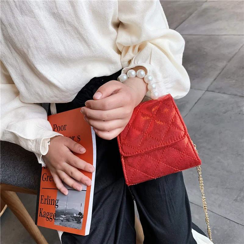 Wholesale Mini Kids Purses Handbag Children Fashion Side Bags for Girls Shoulder Chain Pearl Decoration Messenger Bags for Women