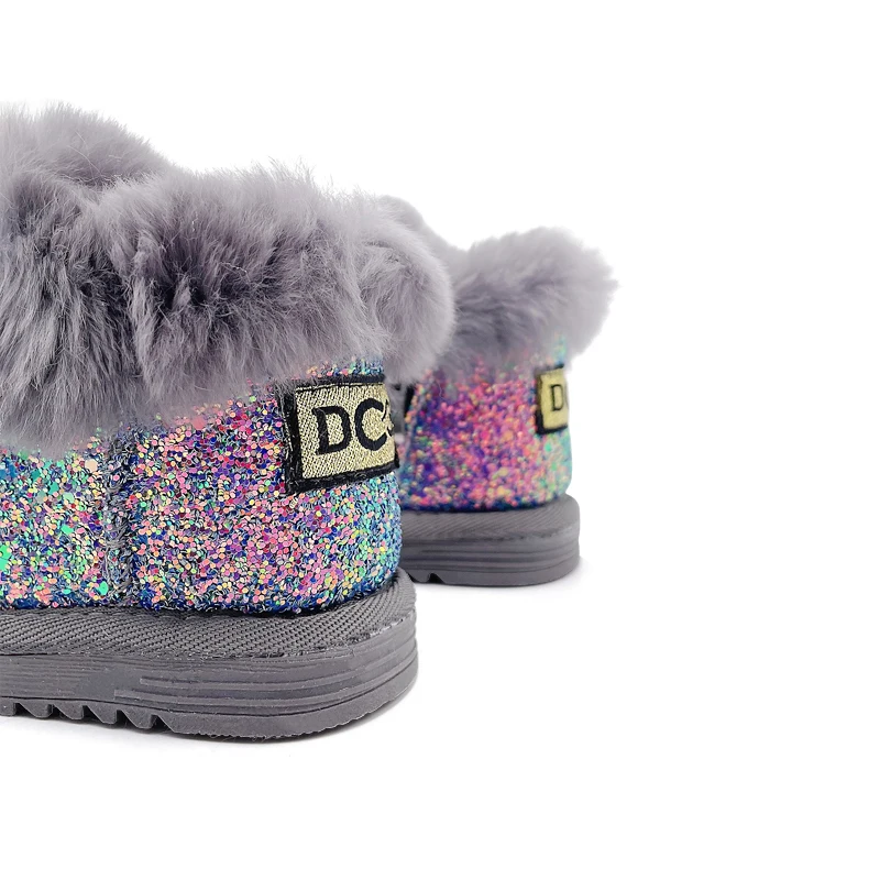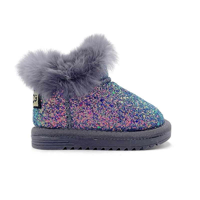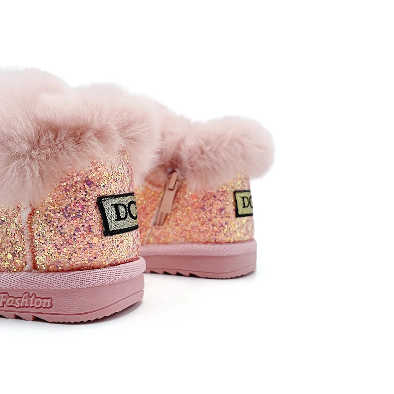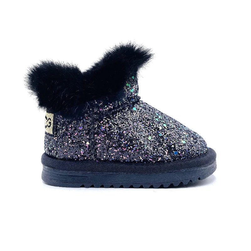 Winter Glitter Snow Boots for Toddlers Fashion Trend Warm Baby Footwear Children Wholesale Black and Pink Boots for Female Kids