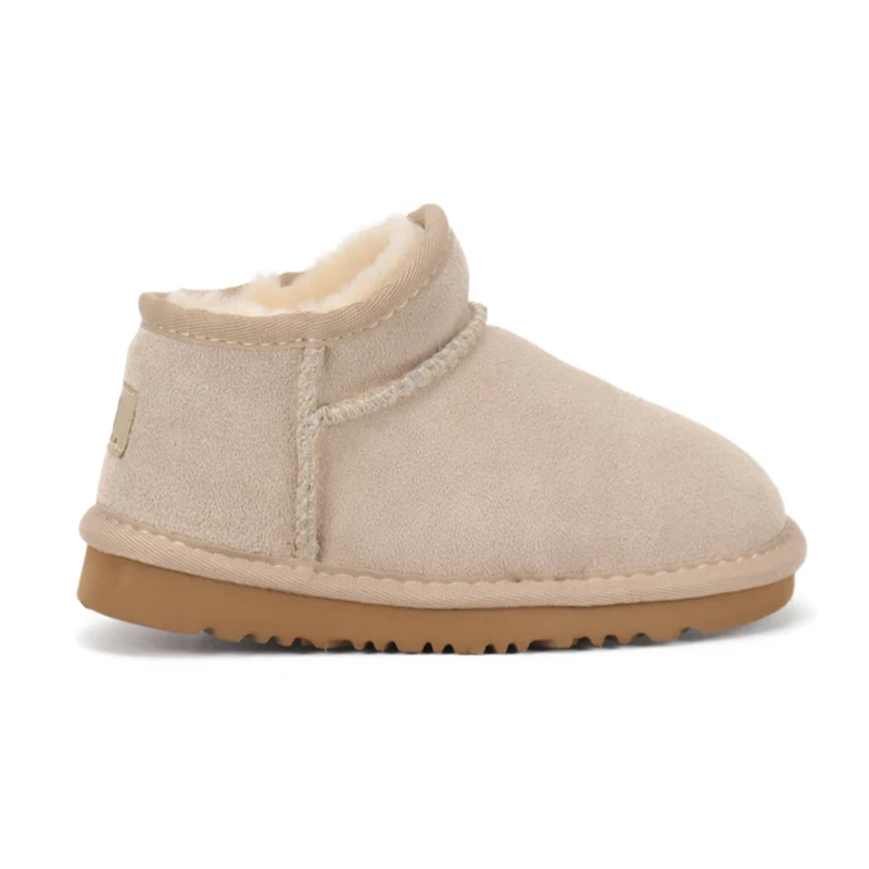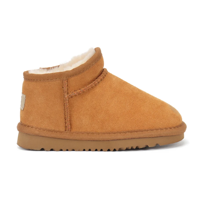 Latest Flat Warm Kids-Shoes-Wholesale Fashion Genuine Leather Plush Winter Shoes for Children Custom Brand Girls Fur Snow Boots