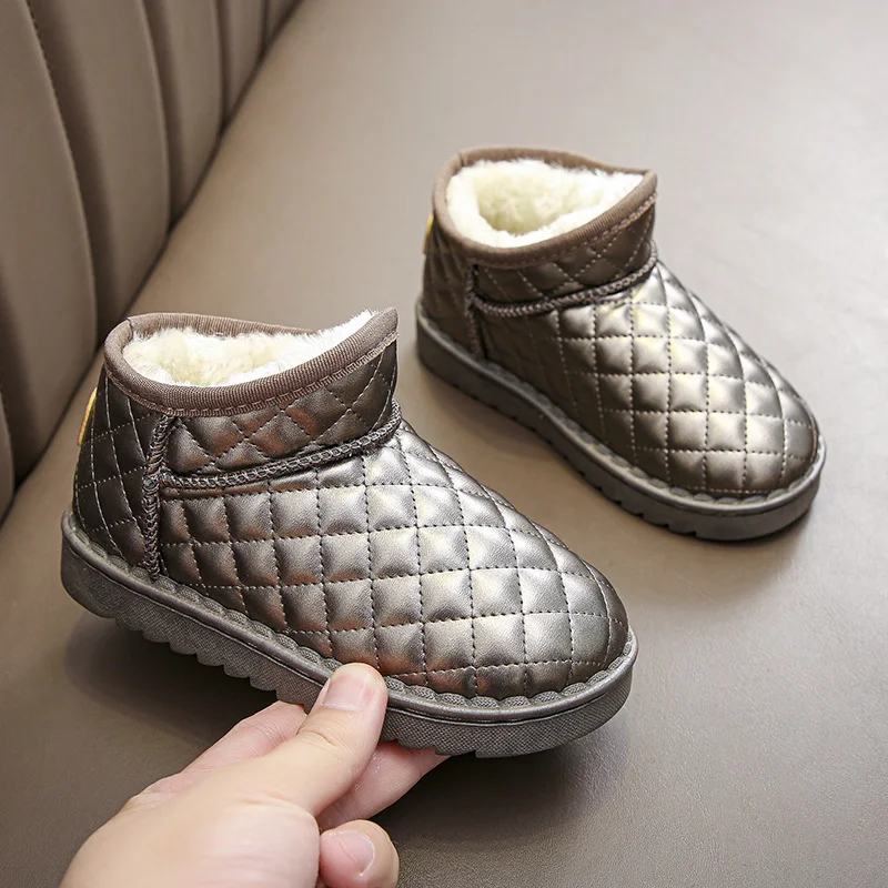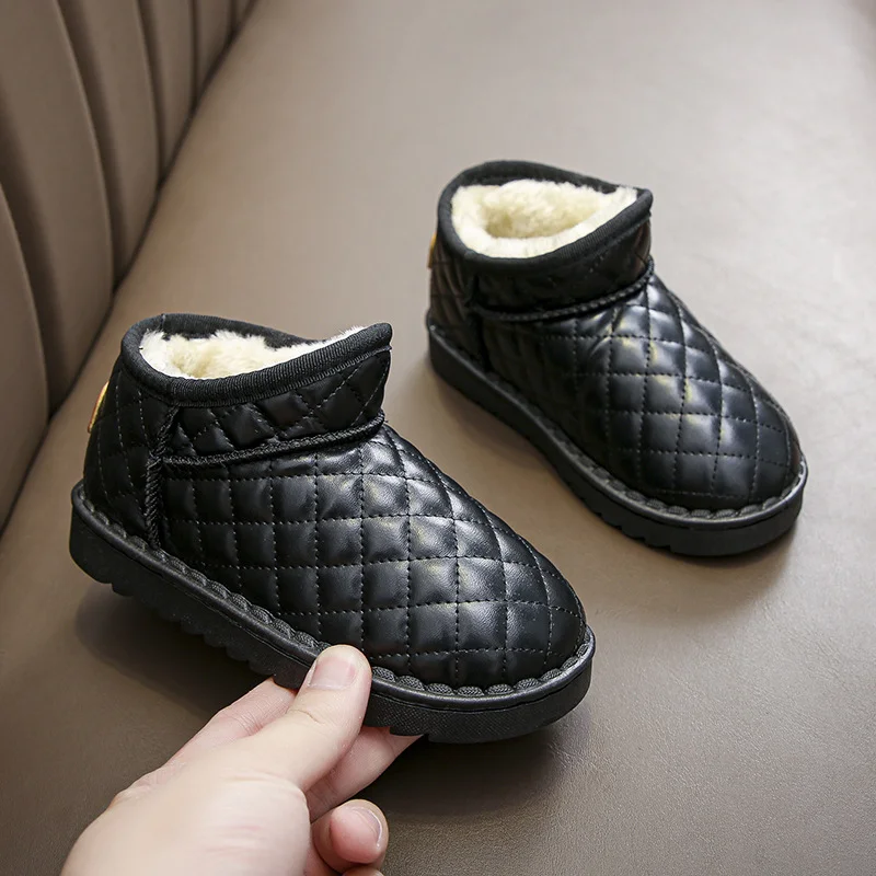 Rhombic Pattern Snow Boots for Children Boys Waterproof Wholesale Autumn Winter Kids Shoes Fashion Thickened Girls Ankle Boots