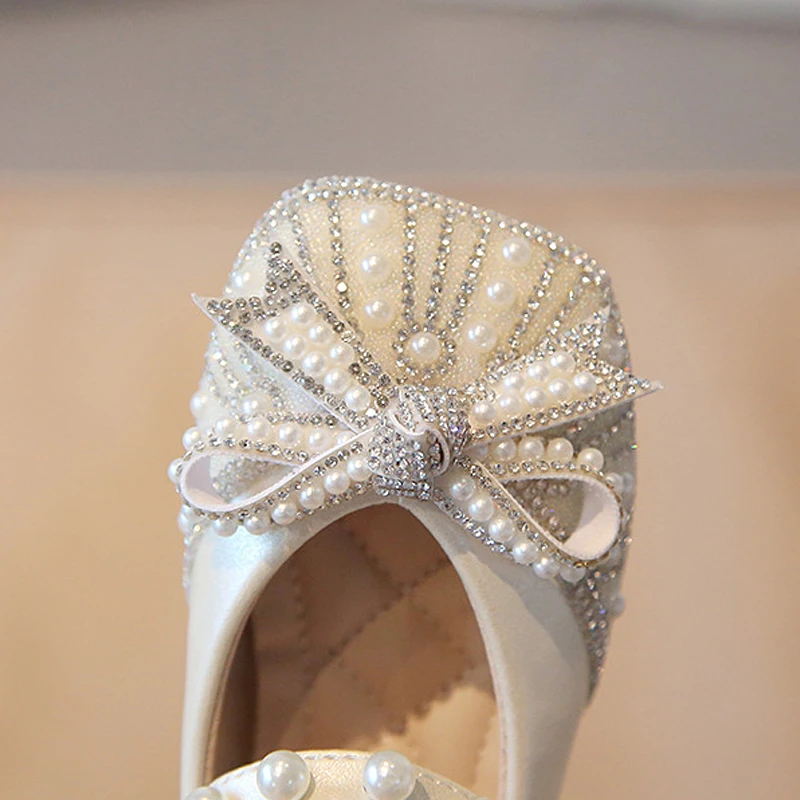 Bow Design Little Children Footwear Wholesale Beautiful Dressing Shoes for Girls Fashion New Styles Glitter Kids Princess Shoes