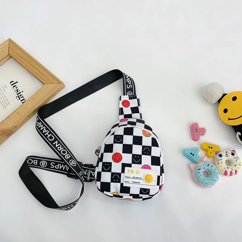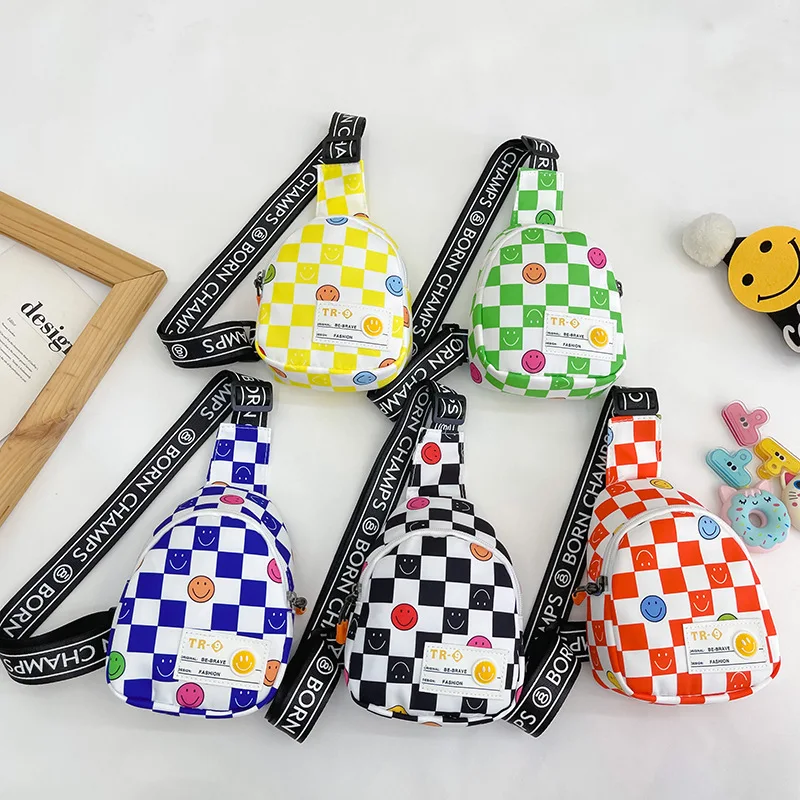 Fashion Check Pattern Children Canvas Shoulder Bag Wholesale Small Boys Crossbody Bags New Styles Sport Kids Single Bags Girls