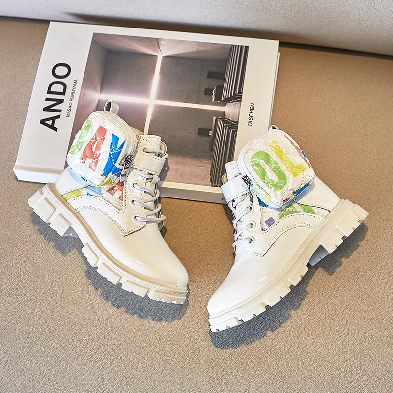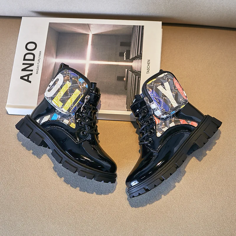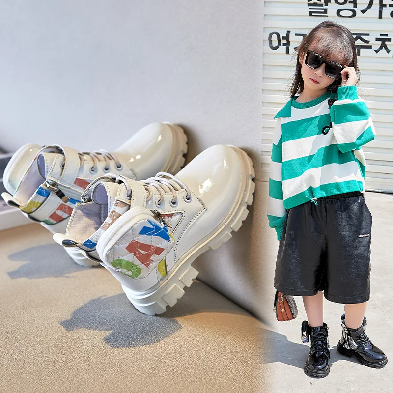 Patent Leather Winter Ankle Boots for Children Wholesale Graffiti Design Teen Kids Casual Shoes Fashion Boots for Teens Girls