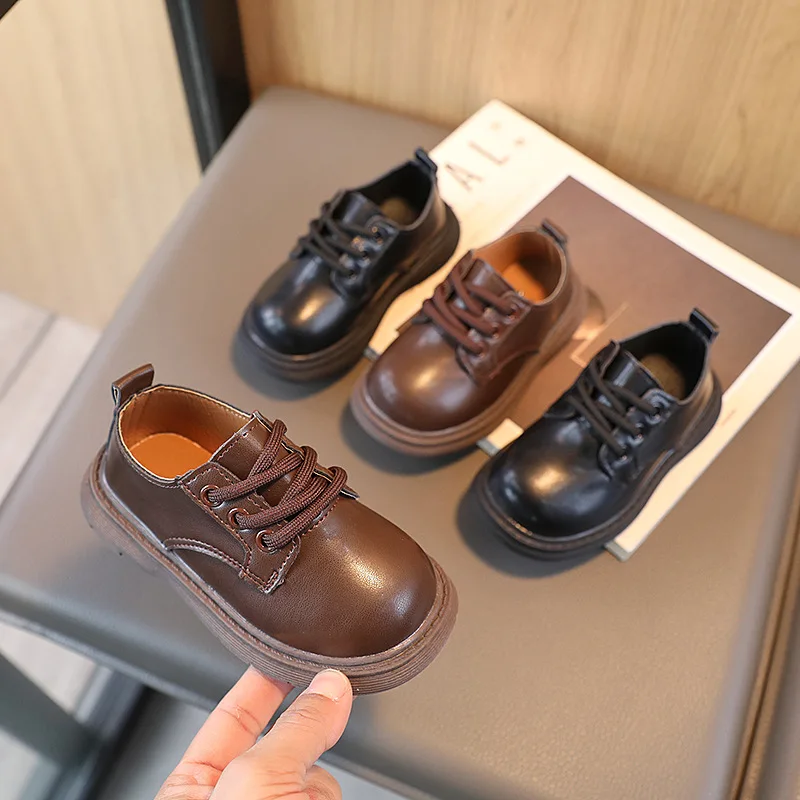 Round Toe Design Unisex Student Black School Shoe Wholesale British Styles Baby Boys Casual Shoes New Kids Dress Shoes for Girls