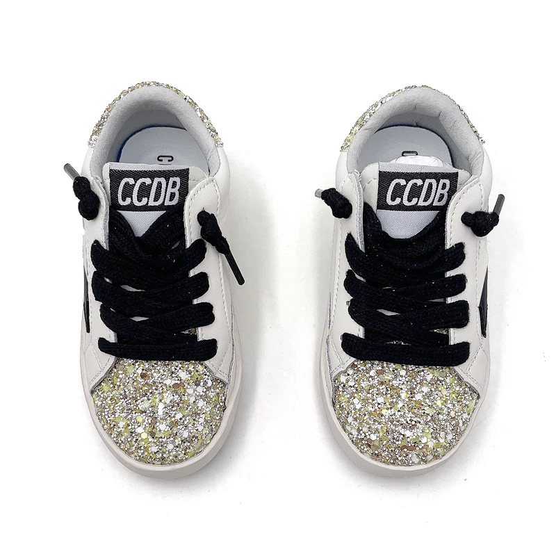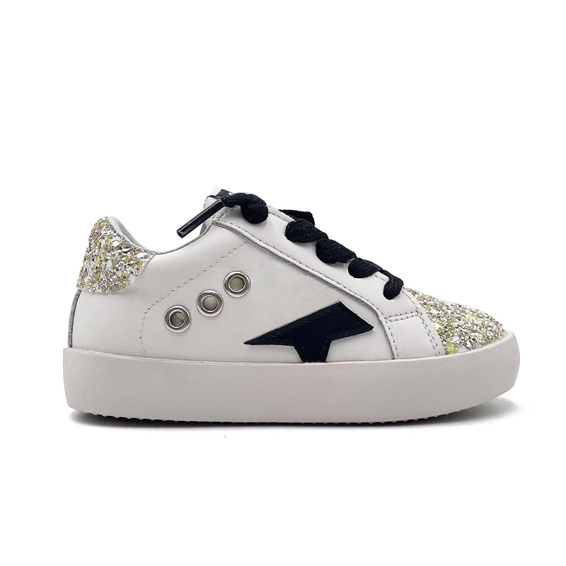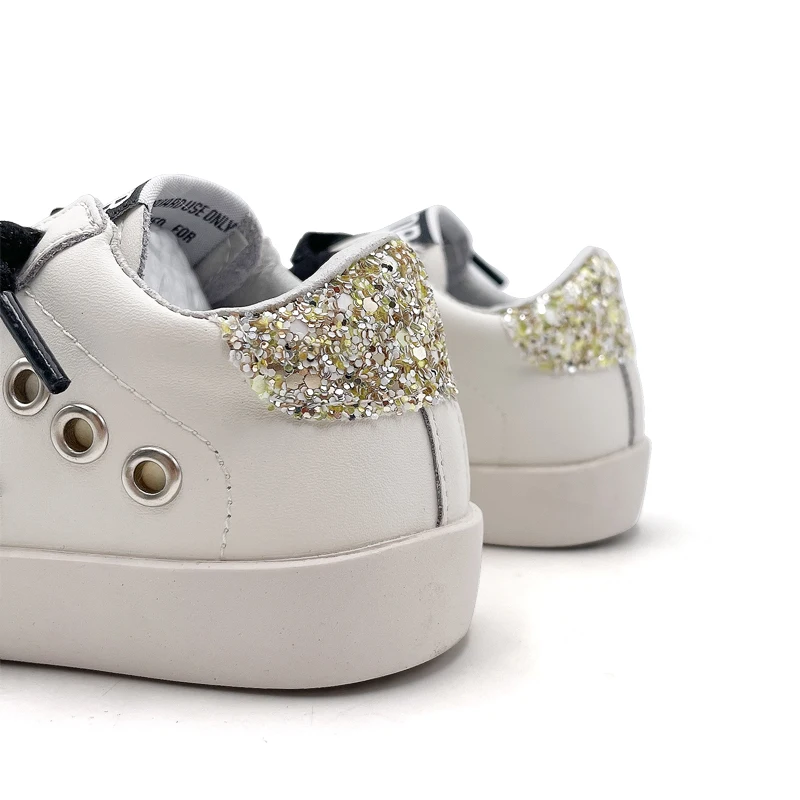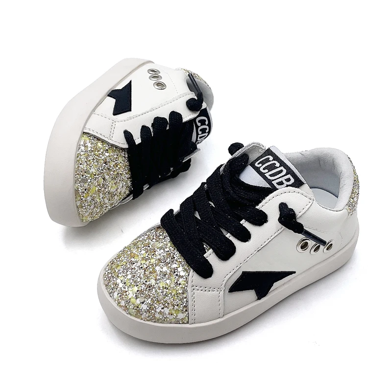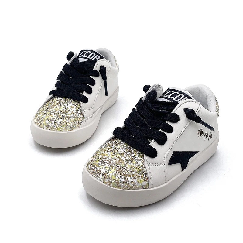 Wholesale Glitter Star Shoes for Kids Fashion Latest Children's Casual Footwear High Quality Leather White Girls Sport Sneakers