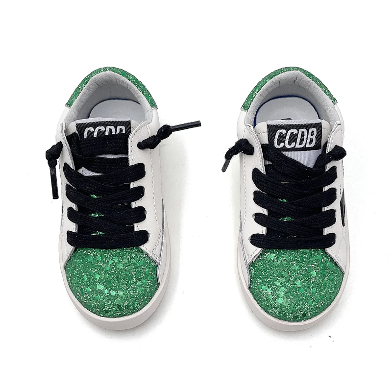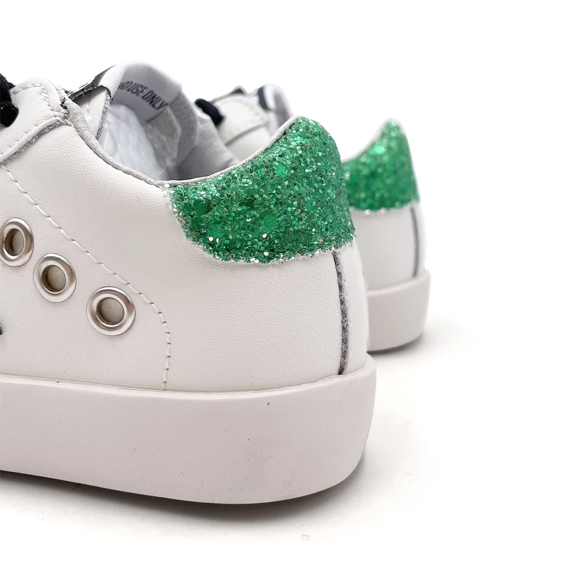 Genuine Leather Green Sneaker for Children Wholesale Star Kids Casual Shoes Bulk New Styles Custom Branded Girls Sport Shoes