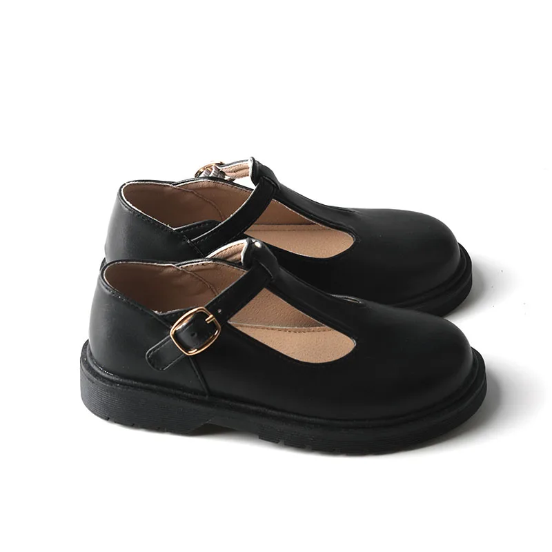 New Arrival Wholesale Leather Black T-bar School Shoes Boys Girls Customizable Minimum Order Quantity Available