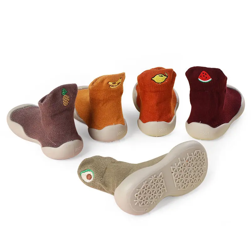 New Cute Cartoon Cotton Floor Socks for Boys Soft Silicone Soles Non-Slip Warm Baby Walking Shoes